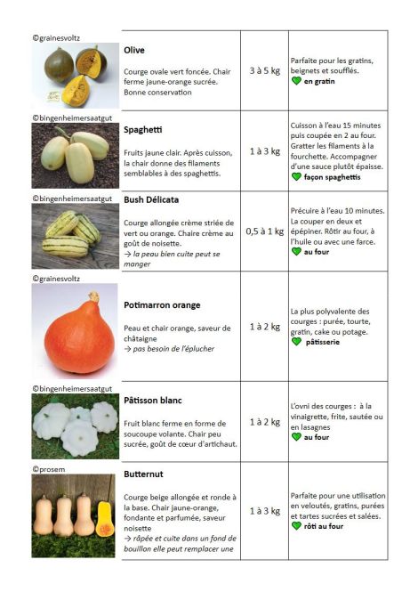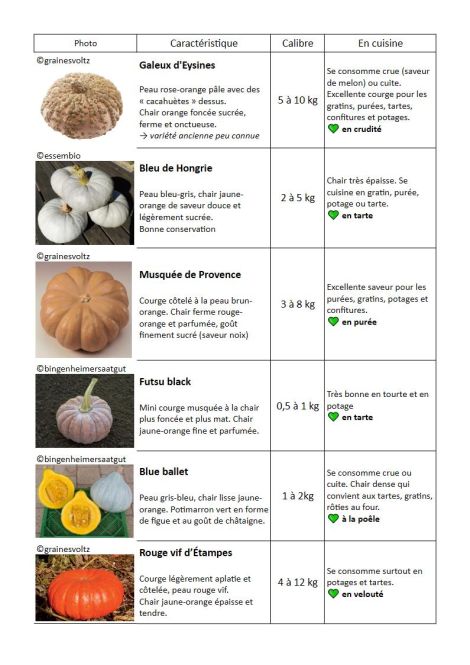 Voici un petit récapitulatif des variétés des courges que nous proposons !