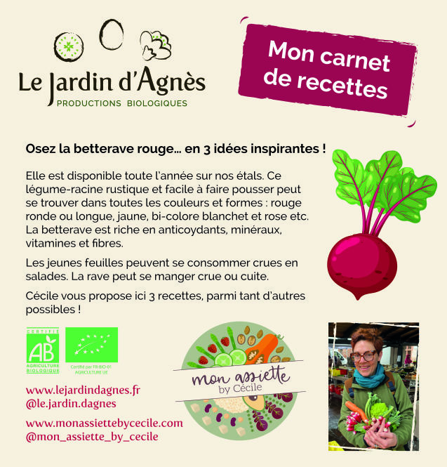 Voici 3 recettes de betteraves rouges proposées par la cheffe de "Mon Assiette by Cécile"